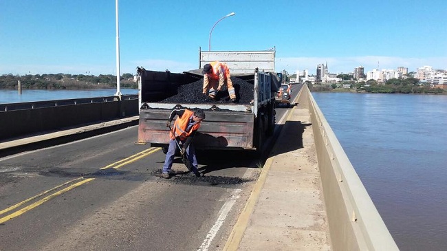 “Hace muy poco recorrimos con profesionales del Distrito Corrientes de Vialidad Nacional toda la zona de Paso de los Libres. Cruzamos hasta Uruguayana y comprobamos la gran cantidad de baches sobre el puente, en este momento personal de la división Conservación ya los están arreglando”, señaló al informar la tarea de los operarios.