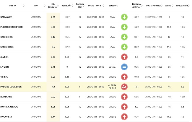 El río Uruguay ya supera la etapa de alerta en el puerto de nuestra ciudad, y aunque en la linea se presentan mediciones en baja, en Paso de los Libres aún continúa creciendo y ya impide el acceso a la zona del paseo costero. Los próximos días comenzaría a descender el nivel y no superaría la etapa de evacuación.