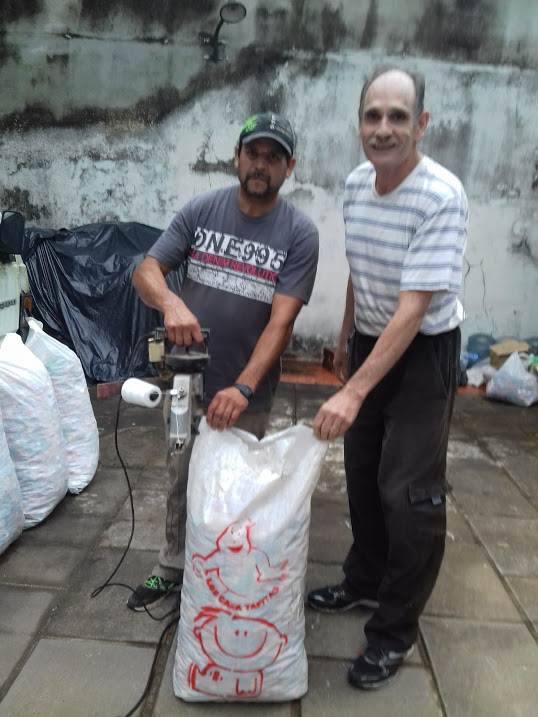 Brugiati culminó junto a la colaboración de Forrajera La Esquina, el envasado de los bolsones que serán llevados hacia la transportadora Cofa cuando consigan una camioneta, ya que esa empresa se encarga de enviar con sus viajes periódicos, los bolsones con tapitas que luego son retirados en Buenos Aires por los camiones de la fundación hacia el centro de reciclaje.