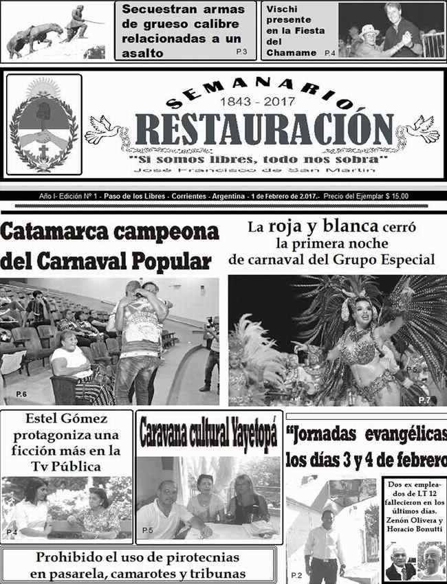 Tras su tapa de lanzamiento y presentación a la sociedad, el Semanario Restauración ya se encuentra en las calles con su primer número oficial. De aquí en más, cada miércoles presentará diversos temas de interés. Ver Tapa Completo en Interior