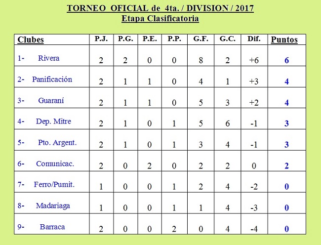 TORNEO OFICIAL DE CUARTA DIVISIÓN 2017