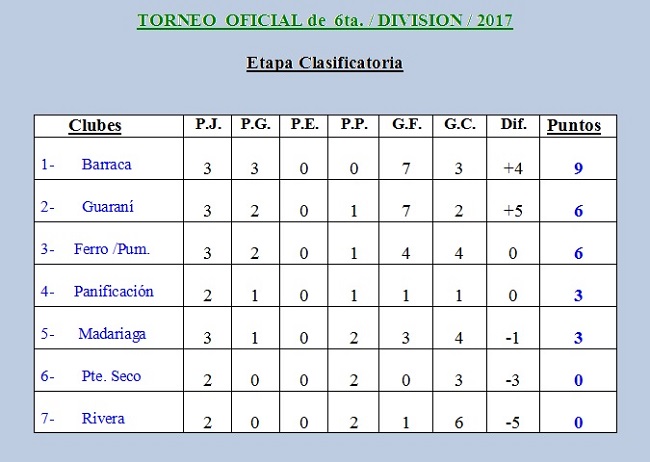 TORNEO OFICIAL DE SEXTA DIVISIÓN 2017