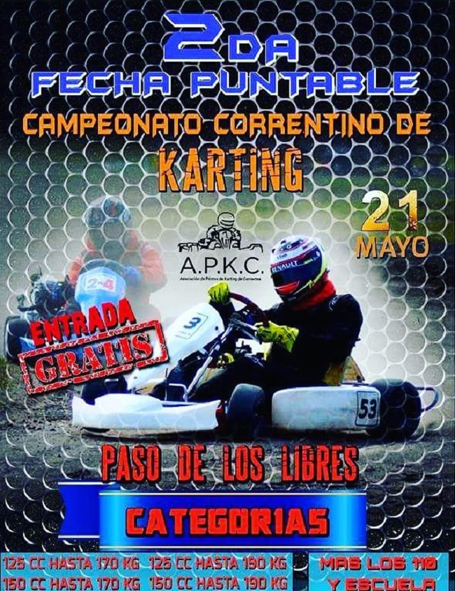 El clima mejoró notablemente en nuestra ciudad y con un trabajo realizado sobre el escenario natural del parque municipal, Paso de los Libres recibirá a la segunda fecha puntable del campeonato correntino de karting. El evento tendrá ingreso libre y gratuito y espera gran concurrencia de público local y de la zona.
