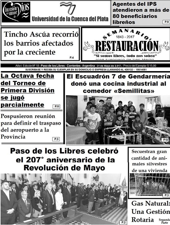 El Semanario Restauración ya se encuentra en las calles. Como cada miércoles, presenta diversos temas de actualidad. Policiales, Sociales, Entrevistas, Políticos, Deportivos y muchos temas más. Ver Tapa Completa en Interior.