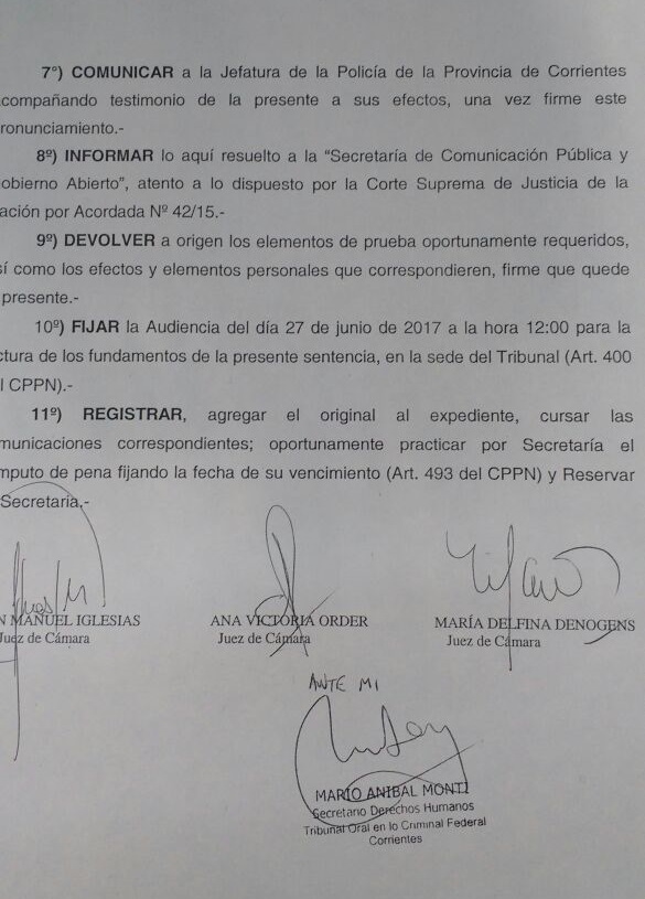 Por su parte, Alejandra Mumbrach quien es secretaria de Comisión Memoria Verdad y Justicia de Paso de los Libres, expresó que esta sentencia “es sumamente importante porque se está viviendo una etapa de retroceso en políticas de derechos humanos”, en ese sentido aclaró que si bien se esperó una mayor cantidad de pena “el valor simbólico de esta condena comprueba que se vivió un genocidio y se cometieron delitos de lesa humanidad”.