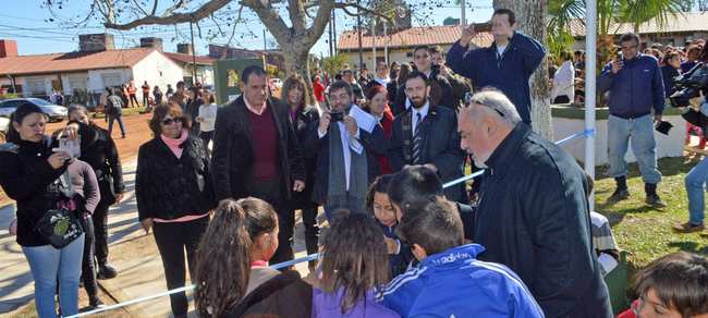 Para dejar formalmente inaugurado la nueva plaza, el gobernador junto al intendente y niños del barrio realizaron el tradicional corte de cinta. Participaron del acto: intendentes de distintas localidades; ministros del gobierno de la provincia; legisladores provinciales y nacionales; presidente del Concejo Deliberante, Mónica De Gaetano; concejales; miembros del gabinete municipal; director nacional de Territorio de la Secretaría de la Vivienda, Marcelo Cano; autoridades de las distintas instituciones de la ciudad; vecinos y público en general.