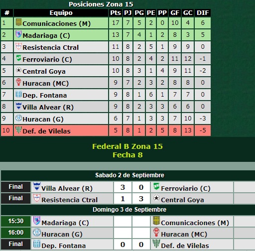 Comunicaciones de Mercedes, con 17 puntos, seguido por Madariaga de Paso de los Libres (13) se enfrentarán este domingo en el estadio Agustín Faraldo por una nueva fecha del torneo Federal B. Durante la jornada del sábado, parece ser que todos los equipos jugaron para que ambos continúen en la cima de la tabla de posiciones.