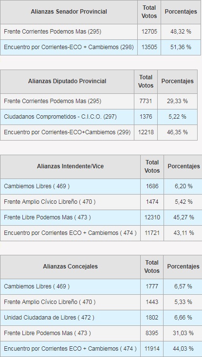 ESCRUTINIO PROVISORIO Martín “Tincho” Ascúa es el Intendente electo con el 45,27% de los votos Con todas las mesas escrutadas en el escrutinio provisorio, que activó su carga alrededor de las 3.00 horas de la madrugada, el candidato a intendente de Libres Podemos Más es el que más sufragios logró a su favor y se consagra como el próximo jefe comunal de Paso de los Libres. Obtuvo el 45,27 %. Todos los números en Paso de los Libres  Martín “Tincho” Ascúa realizó sin dudas una campaña destacable, logró caminar todos los barrios de la ciudad y conformar un equipo de trabajo que cuidó cada voto hasta último momento. Su equipo trabajó en el bunker de calle Colón hasta la medianoche, momento en que dieron a conocer la ventaja que mantenían sobre su principal oponente, José “Chelo” Sincovez, quien quedó dos puntos por debajo (43,11%). Votó según el escrutinio provisorio el 71% del padrón. Muy por detrás quedaron Damián Garavano (6,20%) y Roberto Hantouche (5,42%).