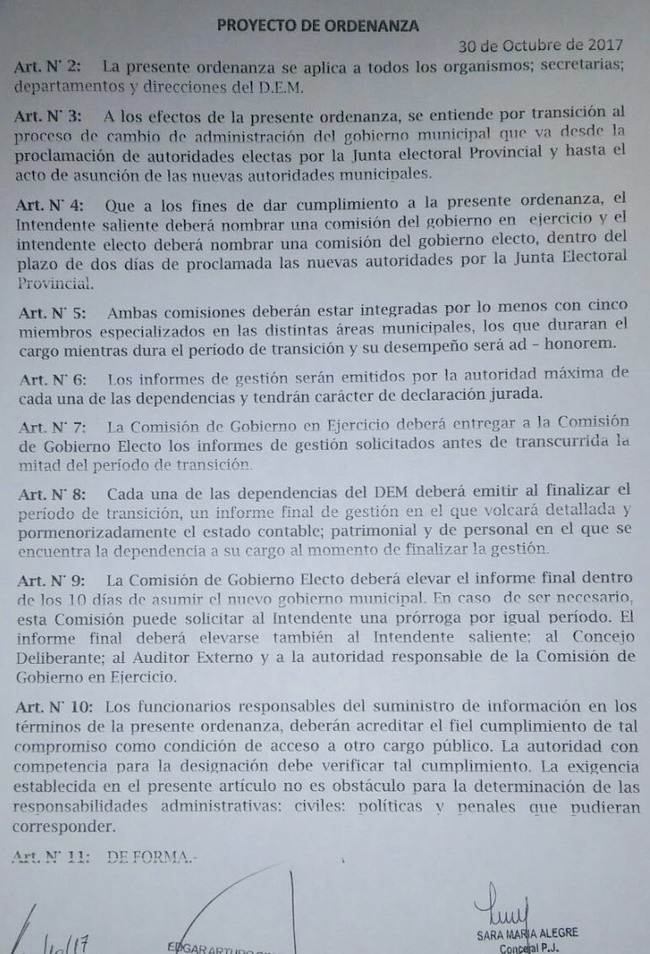 “Era muy interesante la propuesta, porque establecía por ejemplo que se conformen dos comisiones, una integrada por cinco representantes del actual Ejecutivo y otra, con igual número de integrantes pero designadas por las autoridades electas. Creo que eso podría facilitar las transiciones”, subrayó el jefe comunal electo de Paso de los Libres.