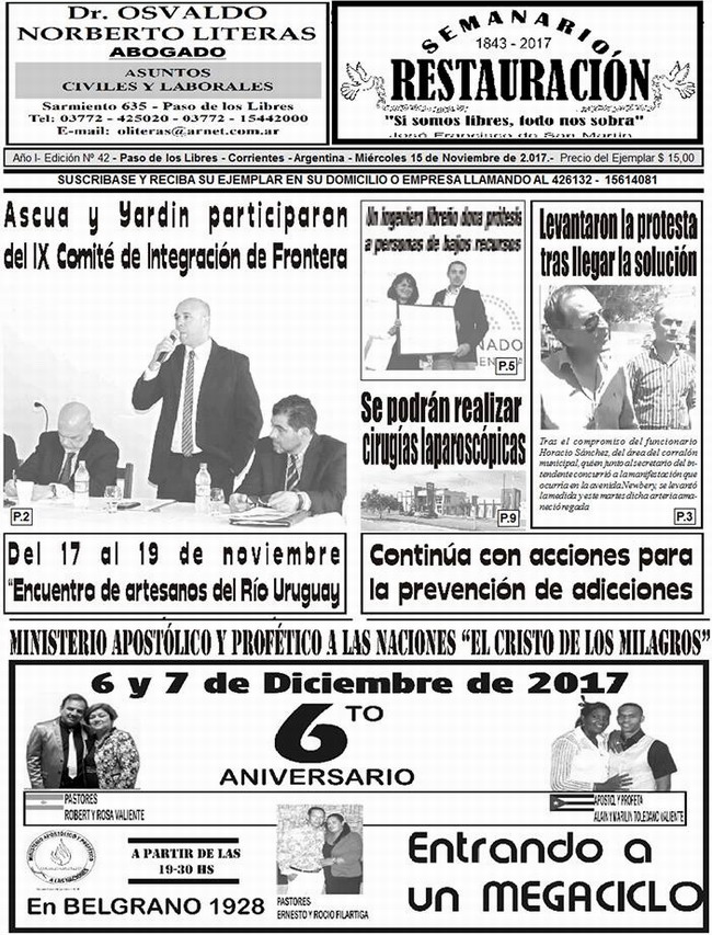 El Semanario Restauración ya se encuentra en las calles. Como cada semana, presenta diversos temas de actualidad. Policiales, Sociales, Entrevistas, Políticos, Deportivos y muchos temas más. Ver la Tapa Completa en Interior.