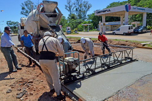 MUNICIPALES Se recupera la cinta asfáltica sobre avenida San Martín Personal de la Dirección de Obras Públicas trabajan en la reposición del pavimento deteriorado sobre avenida San Martín al 2000, en inmediaciones de la Terminal de Ómnibus. Éstos trabajos se enmarcan en lo planificado por la gestión del Intendente Martín Ascúa como proyección de mejoras para la urbanística de la ciudad.  Una cuadrilla trabaja en la colocación y nivelación de la capa de hormigón armado de 15 centímetros de espesor en el perímetro correspondiente a los seis paños dañados que fueron retirados. Una vez nivelado el suelo, se realizó un tratamiento del suelo para luego colocar la capa de hormigón que dejará en perfecta condiciones para el tránsito vehicular en dicho sector.