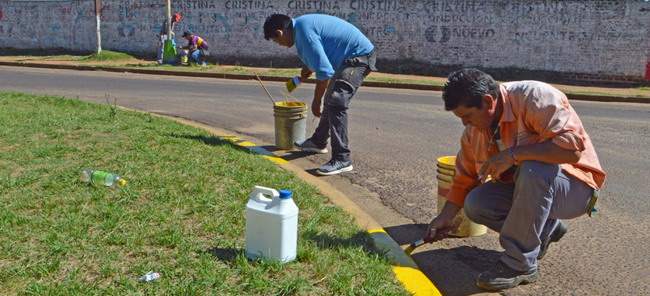 Cambiando la estética de la ciudad y sobre todo uno de los accesos a Paso de los Libres, obreros continúan con los trabajos de pintura en columnas de iluminación y cordón cuneta, tarea que iniciara sobre la avenida JJ Valle e intersección Ruta Nacional 117.