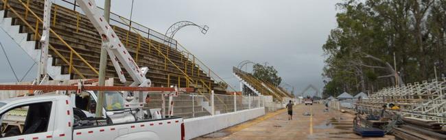 La cuadrilla que trabaja intensamente en el lugar, realizó el cierre perimetral de tribunas y sectores de bares como así también del predio y pasarela. También se colocó pisos estructurales e individuales para los siete bares externos y cuatro bares ubicados debajo de las tribunas.