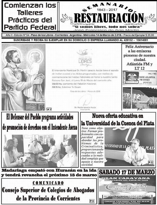 El Semanario Restauración ya se encuentra en las calles. Como cada semana, presenta diversos temas de actualidad. Policiales, Sociales, Entrevistas, Políticos, Deportivos y muchos temas más. Ver la Tapa Completa en Interior.