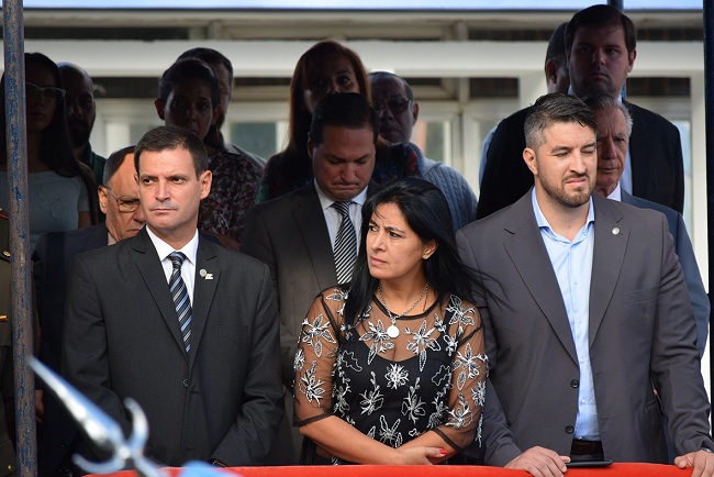 Lo hizo acompañado de los ediles Ana Miño, Beatriz Moreyra, Pamela Fernández, Diego Figueredo y Wilfredo Collinet. Y en la ocasión se leyeron palabras alusivas por parte de un ex soldado combatiente y la banda de música “Vuelta de Obligado” del Grupo de Artillería de Monte 3 ejecutó el Himno Nacional, el toque de silencio y la Marcha de las Malvinas.