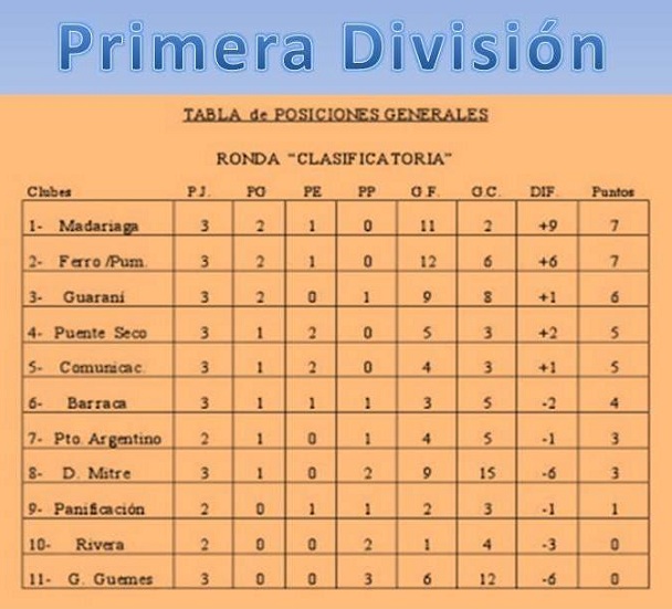 10.00 horas Ferro/Pumitas Vs. Rivera 11.15 horas Guaraní Vs. Barraca 12.30 horas Puente Seco Vs. Panificación 13.45 horas Madariaga Vs. Comunicaciones LIBRE: Deportivo Mitre
