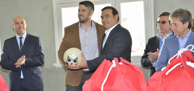 Cumplido este segundo acto en el JIN N° 49, las autoridades se trasladaron unos 200 metros hasta la sede de la Liga Libreña de Fútbol, ubicada en la esquina de las calles Belgrano y Reguera, donde Valdés, Ascua y el presidente de la entidad, Wilfredo Collinet, entregaron juegos de camisetas y pelotas a diversos equipos.