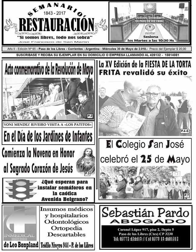 El Semanario Restauración ya se encuentra en las calles. Como cada semana, presenta diversos temas de actualidad. Policiales, Sociales, Entrevistas, Políticos, Deportivos de nuestra ciudad, la provincia y la nación. Mirá la tapa completa en interior