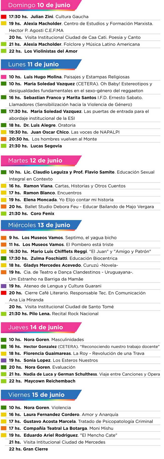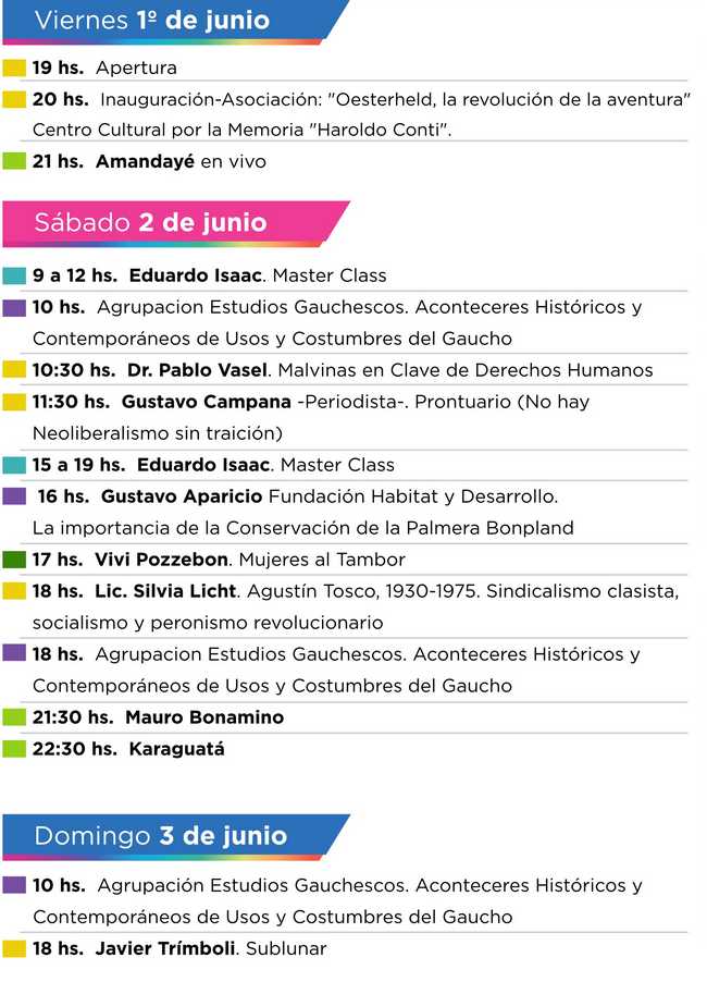 El retorno de la Feria del Libro y la Cultura a Paso de los Libres dará inicio con su apertura a las 19 horas y luego de las primeras actividades tendrá como número central al reconocido grupo musical “Amandayé”. La misma será desarrollada con importantes actividades hasta el 15 de junio. ESTE ES EL PROGRAMA COMPLETO