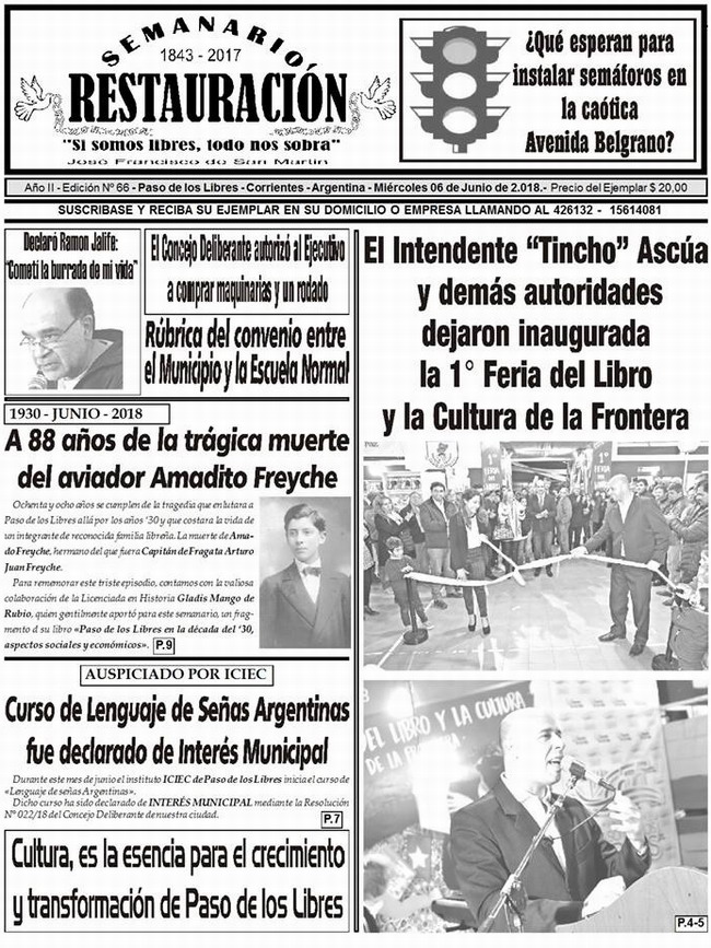 El Semanario Restauración ya se encuentra en las calles. Como cada semana, presenta diversos temas de actualidad. Policiales, Sociales, Entrevistas, Políticos, Deportivos de nuestra ciudad, la provincia y la nación. Mirá la tapa completa en interior