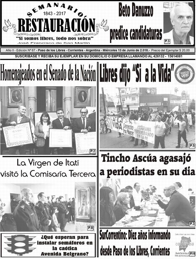 El Semanario Restauración de Paso de los Libres, ya se encuentra en las calles. Como cada semana, presenta diversos temas de actualidad. Policiales, Sociales, Entrevistas, Políticos, Deportivos de nuestra ciudad, la provincia y la nación. Mirá la tapa completa en interior