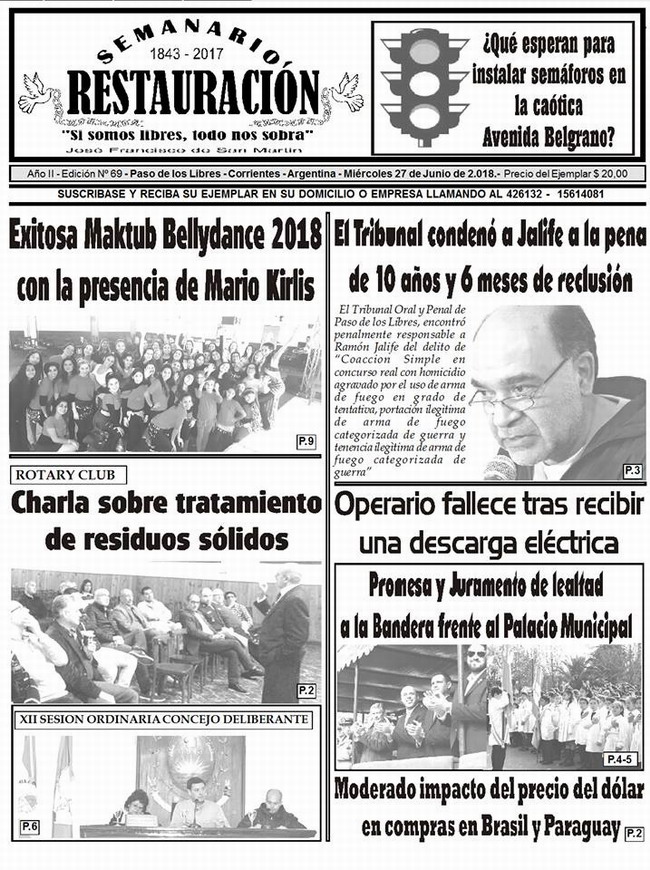 El Semanario Restauración de Paso de los Libres, ya se encuentra en las calles. Como cada semana, presenta diversos temas de actualidad. Policiales, Sociales, Entrevistas, Políticos, Deportivos de nuestra ciudad, la provincia y la nación. Mirá la tapa completa en interior...