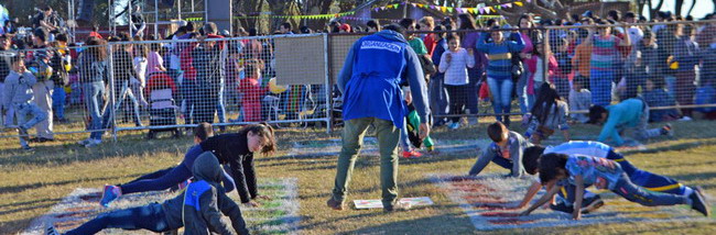 Organizadores dispusieron de (5) inflables, sectores de juegos (rayuela, carreras de embolsado, twester,) stand donde el color y el brillo se reflejaron en las caritas de quienes visitaban su espacio.