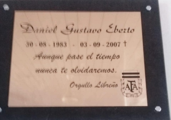 Fue en el marco del acto de inauguración del Torneo de Fútbol Infantil organizado por Ferro/Pumitas y con el apoyo del municipio local entre las actividades por el Mes Aniversario de la ciudad. En ese acto, Eberto fue recordado y homenajeado con el descubrimiento de una placa.