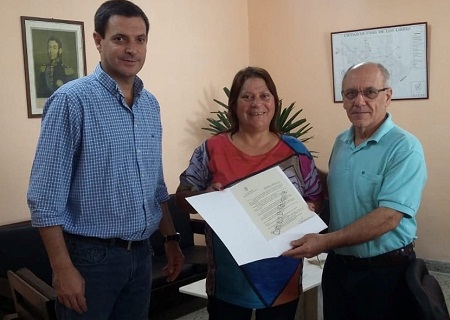 El presidente del Concejo Deliberante de Paso de los Libres, Carlos Luis Gatti, y el concejal Roberto Francisco Hantouche entregaron a Teresita Mancuello una copia de la Resolución Nº067/18, que declara De Interés Municipal la “Campaña de Concientización y Prevención Día Mundial de la Diabetes”, a realizarse la semana que viene.