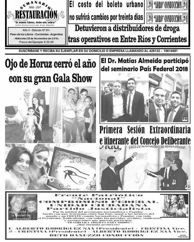 El Semanario Restauración de Paso de los Libres, ya se encuentra en las calles. Como cada semana, Todo Libres te adelanta la información que presenta la versión impresa que trata diversos temas de actualidad. Policiales, Sociales, Entrevistas, Políticos, Deportivos de nuestra ciudad, la provincia y la nación. Mirá la tapa completa en interior...