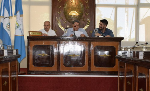 La sesión estuvo presidida en primera instancia por Carlos Luis Gatti, quien, luego de llamar a los conejales Sergio Cettour y Wilfredo Collinet para que icen la Bandera Nacional, como es de rigor convocó al edil de más edad, Aristóbulo Marticorena, para que presida, y al más joven, el propio Collinet, para que lo secunde en el estrado junto al inefable Fabián Hachen, prosecretario del Cuerpo.