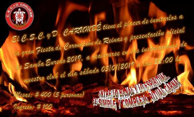 Al ya anunciado evento de las comparsas que integran el carnaval popular, se suman las coronaciones de la Asociación Escuela de Samba Tradición, y del Circulo Social, Cultural y Deportivo Carumbé, que tendrán este viernes y sábado, eventos donde coronarán a sus soberanas y presentarán sambas enredo.