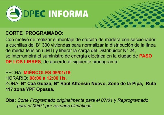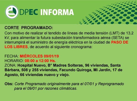 La Dirección Provincial de Energía anuncia cortes en el suministro para el miércoles