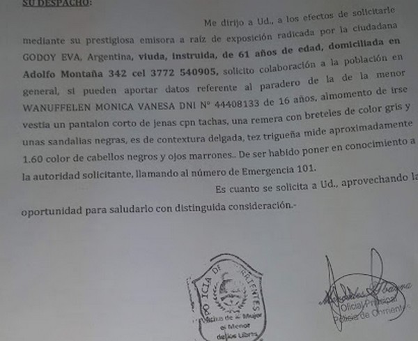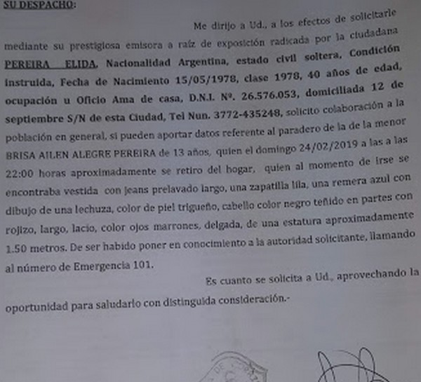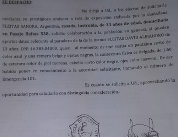 Con fecha de hoy, 26 de Febrero, la Comisaria de la Mujer y el Menor emitió comunicados para dar con el paradero de tres menores de edad, dos de 13 y uno de 16 años, motivo por el cual se solicita el urgente aviso a las autoridades policiales de verlos o tener conocimiento de algún dato al respecto. En el interior el detalle de los menores que son buscados.