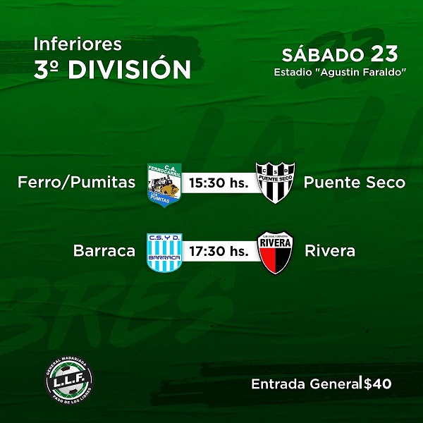 Las inferiores del fútbol libreño comienzan sus respectivos torneos desde este sábado. Sexta tendrá fecha completa en el campo del Club Ferro/Pumitas, mientras que los encuentros de Tercera tendrán lugar –tanto sábado como domingo- se desarrollarán en el Estadio Agustín Faraldo.
