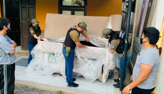 Al momento de la inspección de la carga, con apoyo del perro antinarcóticos “Simón”,los gendarmes hallaron seis divanes en los que estaban ocultos 59 paquetes amorfos.