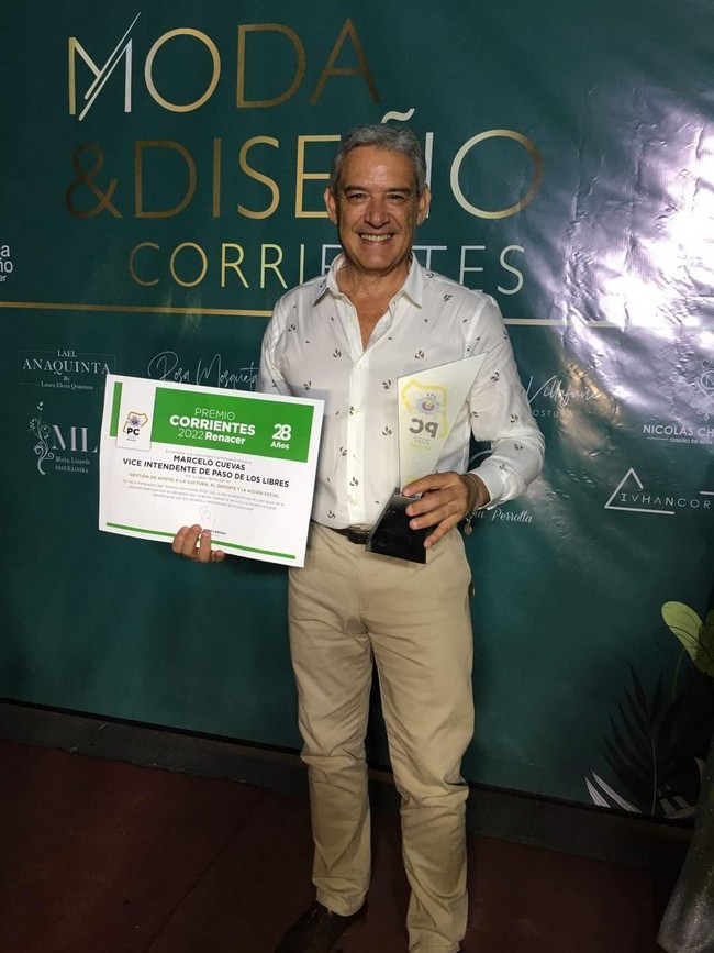 La Fundación Poepi Yapó ha otorgado el Premio Corrientes 2022 al Viceintendente de Paso de los Libres, Marcelo José Cuevas, por su aporte a la comunidad y su esfuerzo y dedicación en tareas relacionadas con el bien común. El premio fue otorgado a través de la opinión pública y se entregó en una ceremonia en el Salón Dorado del Club de Regatas Corrientes, donde también se reconocieron a empresas, profesionales e instituciones.