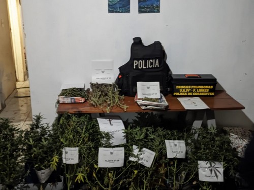 Efectivos policiales de la Comisaria de Distrito de la Mujer y el Menor de Paso de los Libres, tras ser alertados por el Sistema Integral de Seguridad 911, acudieron a un llamado en el barrio 80 viviendas, en el cual aparentemente habría disturbios en un inmueble, donde hallaron y secuestraron cogollos, hojas y 07 plantas de marihuana.