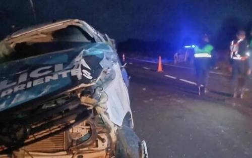 Impactante vuelco de un patrullero de la Policía de Corrientes sobre la Ruta Nacional 123