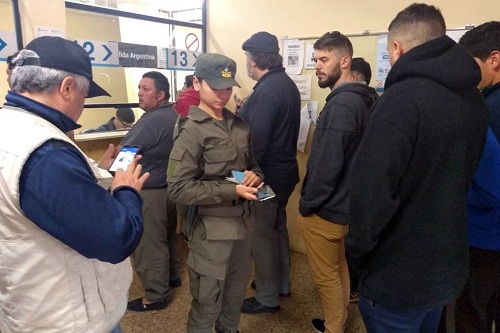 Las autoridades argentinas, en pleno control de pasaportes y documentos a los hinchas que intentan pasar a territorio brasileño para ver al seleccionado argentino. En Paso de los Libres se detuvo a Cristian Paoli, sobre quien pesa una orden de restricción emitida por la Agencia de Prevención de la Violencia en el Deporte (Aprevide) en la provincia de Buenos Aires.