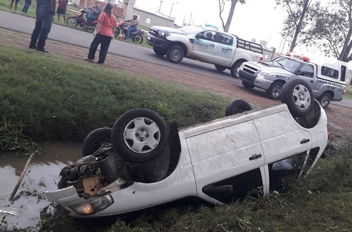 Un vendedor oriundo de nuestra ciudad resultó ileso tras despistar y volcar el vehículo en el que se movilizaba, que quedó con las cuatro ruedas para arriba en un zanjón con agua en la ciudad de Mercedes. El accidente se registró ayer alrededor de las 16.40 sobre la avenida Pellegrini, en momento que ingresaba a la localidad de Mercedes.