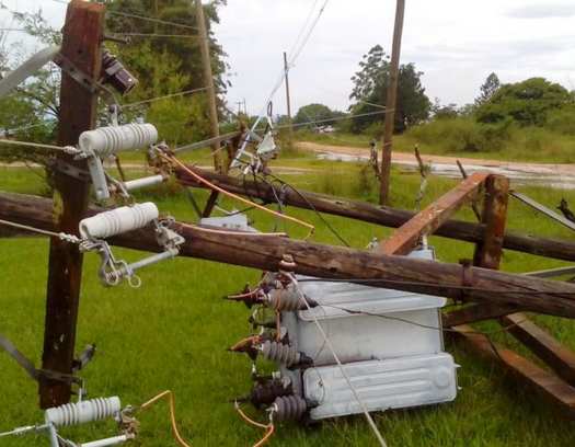 El miércoles 23 el sur de la provincia volvió a tener fuertes tormentas con diversos daños en las redes eléctricas. Se verificaron más de 10 postes caídos de línea de media tensión entre Paso de los Libres y Bonpland, y entre Bonpland y Parada Pucheta los operarios detectaron más de 70 postes caídos, en su mayoría recuperados durante el jueves.