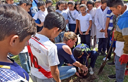 Alumnos de 5to. y 6to. grado de la escuela Nº 242 “General Manuel Belgrano” junto a personal de la Municipalidad de Paso de los Libres representado por Florencia Tofoletti, encargada del Departamento de Concientización Ambiental en Paso de los Libres y Elina Fischer, responsable de la Oficina de Desarrollo Forestal y Espacios Verdes trabajaron de manera mancomunada en el Proyecto Institucional “Nada se pierde, todo se transforma”.