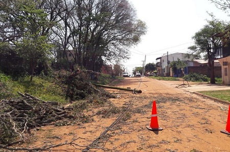 Sectores de la ciudad sin energía eléctrica por caída de postes y cableado afectado
