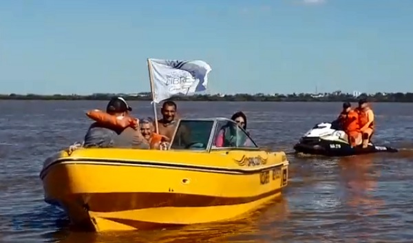 El intendente y el vice de Paso de los Libres, Martín Ascúa y Marcelo Cuevas acompañaron al presidente del Club Náutico Libreño (CNL), Federico Díaz Burgos la mañana del domingo, en la largada de las embarcaciones que disputaron un lugar en el podio del 17º Torneo de Pesca Variada del Río Uruguay.