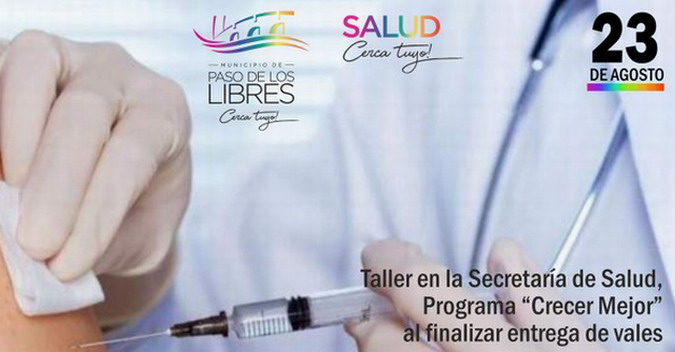 JUEVES 23 EN PASO DE LOS LIBRES: Taller a cargo de Agentes Sanitarias y entrega de vales del Programa “Crecer Mejor”