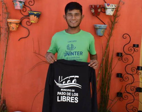 El intendente municipal de Paso de los Libres, Martín Ascúa acompañado del Director de deportes Gonzalo Alvarez , hizo entrega en el día sábado, de indumentaria al joven maratonista Mariano Ferreyra.