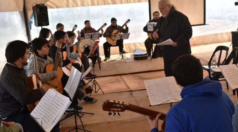 La segunda jornada inició con clases maestras de guitarras a cargo del virtuoso guitarrista y compositor argentino, Eduardo Isacc.La actividad se desarrollo en el espacio de jóvenes donde los participantes afinaron sus guitarras, trabajaron con partituras e interpretaron algunas piezas musicales.