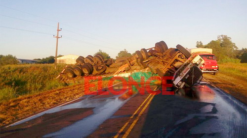 Un camión de una empresa brasileña que transportaba café verde, conducido por un hombre de 59 años y domiciliado en la localidad de Paso de los Libres (Corrientes), despistó de la cinta asfáltica y volcó quedando parte de su carga en la banquina.