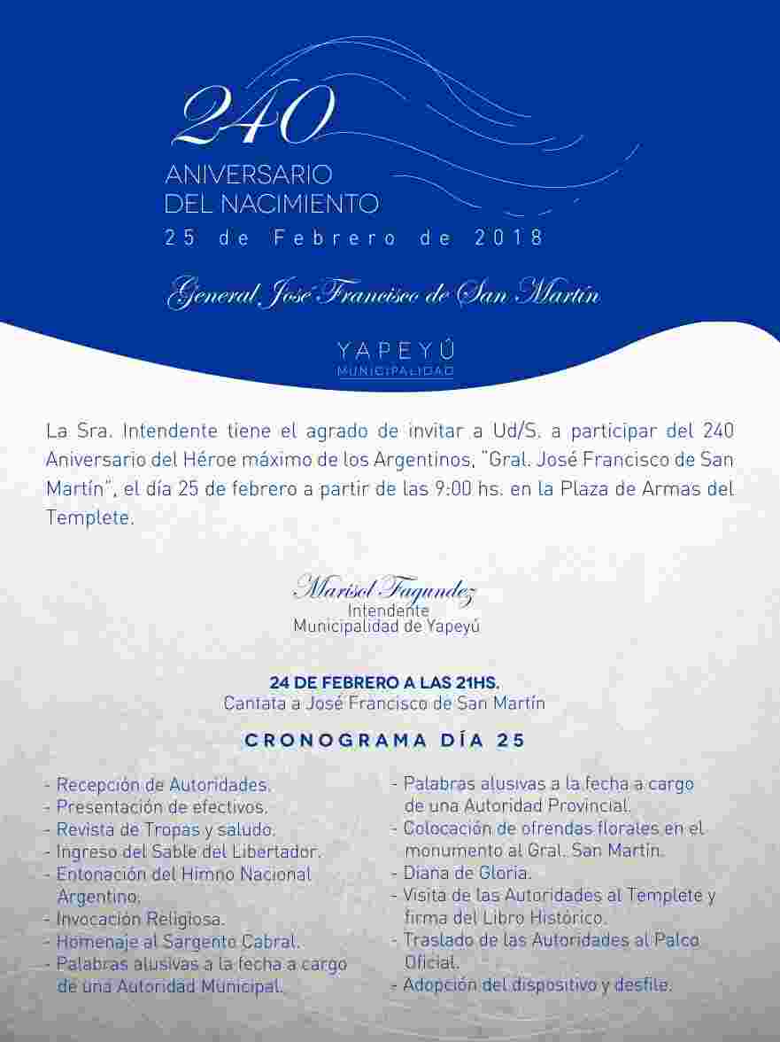 240° Aniversario del Natalicio del Libertador de América y nosotros recibimos su cumpleaños con la Cantata a "José Francisco".El domingo 25 los Actos Oficiales desde las 9 hs en la Plaza de Armas del Templete.-